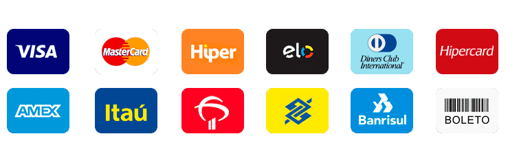 Cartão crédito, débito e pix, o sistema chega em minutos no e-mail cadastrado, Boleto de 1 à 2 dias úteis.